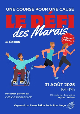 Il vous est proposé de participer sous la bannière «bechterew.ch» au Défi des Marais, une course caritative, solidaire et inclusive, organisée par l’association à but non lucratif Roule pour Hugo, qui œuvre en faveur des blessés médullaires à Genève.
